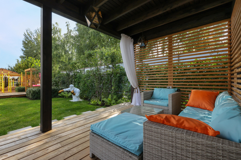 “Участок получился ярким и весёлым, как того хотела хозяйка. Она назвала его «бич-клаб» — в стиле европейских курортов, где можно весело проводить время с друзьями”, - подчёркивает Иван.