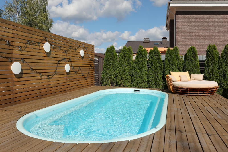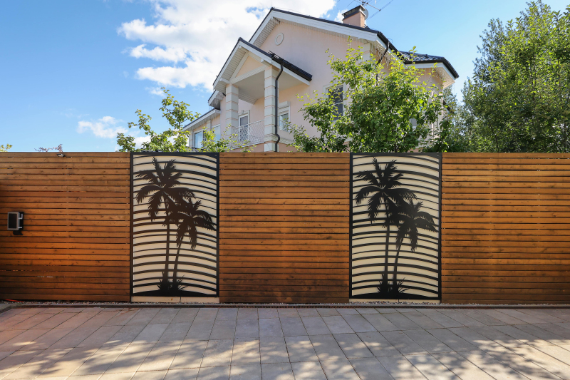 Чтобы избежать этого, выбрали не монолитный забор, а с декоративными элементами, использовали фасадные панели. Отдельно поработали над зоной бассейна с подсветкой, внедрили беседку и добавили лианы. Все это помогло улучшить динамику на относительно небольшой территории.