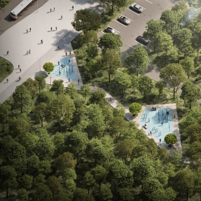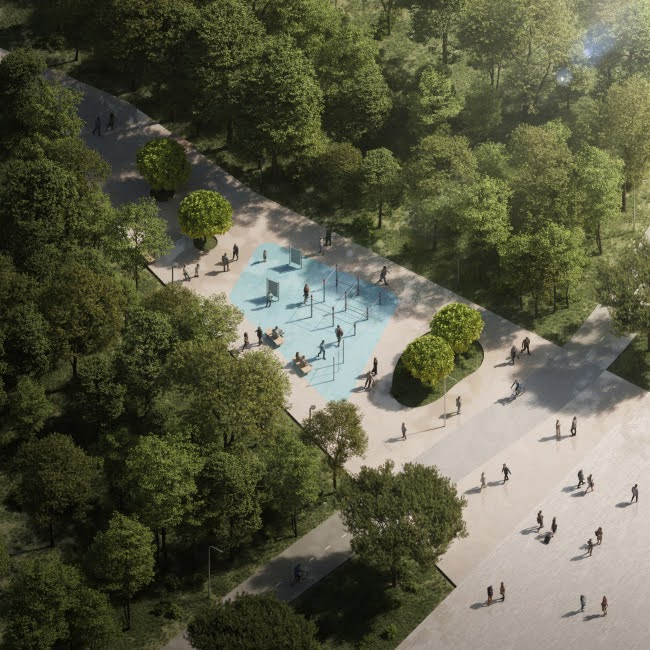 Каспийский прибрежный кластер. Аксонометрия спортивная площадка