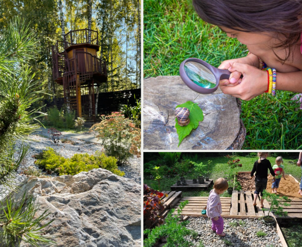 - Природный конструктор — "природное лего" из коряг, палок, камней. Обработайте для безопасности, но дайте свободу фантазии