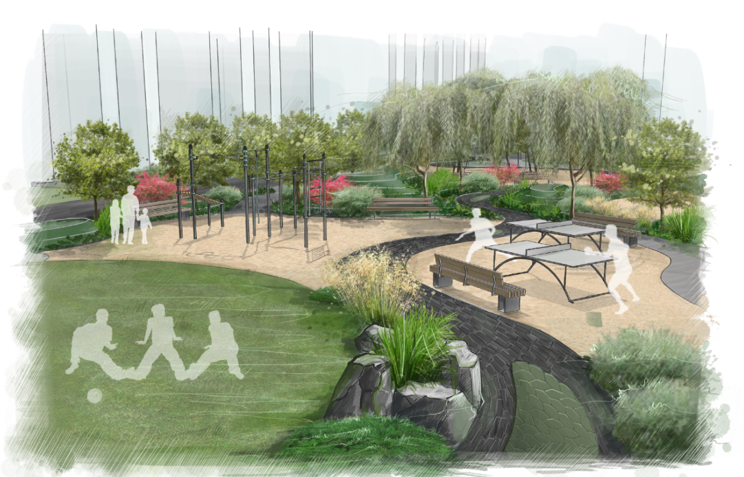 - Зоны для совместных игр — спортивные площадки, пространства для мероприятий